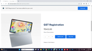 Step 5: Click on Add to Cart Button as displayed in Step 4. “GST Registration” has been added to your cart, will be displayed. Then click on View Cart.